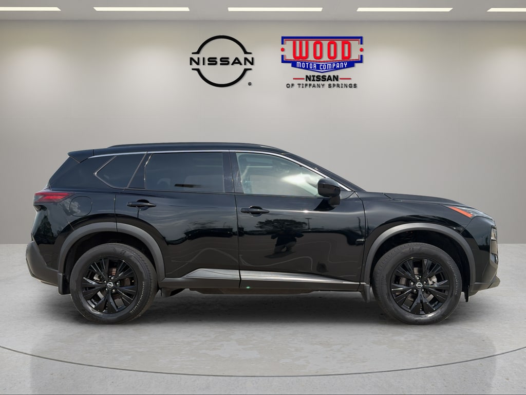 Midnight Edition Package (Black High Gloss Exterior Mirror Caps, TailorFit Leatherette Seat Trim, and Wheels: 18" Gloss Black Painted Alloy), SV Premium B Package (Heated Driver & Front Passenger Seats, Heated Leather Wrapped Steering Wheel, Leatherette Door Trim Inserts w/Stitch, Panoramic Moonroof, Power Liftgate, PRIMATEX Leatherette Seat Trim, Rear Door Sunshades, Rear Personal Lights, Security Alarm, and Silver Painted Roof Rails), Nissan Certified Certified, AWD, 18" Aluminum Alloy Wheels, 4-Wheel Disc Brakes, 5.604 Axle Ratio, 6 Speakers, ABS brakes, Air Conditioning, Alloy wheels, AM/FM Radio, AM/FM radio: SiriusXM, Auto High-beam Headlights, Automatic temperature control, Black Splash Guards (Set of 4), Brake assist, Bumpers: body-color, Cloth Seat Trim, Delay-off headlights, Driver door bin, Driver vanity mirror, Dual front impact airbags, Dual front side impact airbags, Electronic Stability Control, Emergency communication system: NissanConnect Services, First Aid Kit, Floor Mats w/1-Piece Cargo Area Protector, Four wheel independent suspension, Front anti-roll bar, Front Bucket Seats, Front Center Armrest, Front dual zone A/C, Front reading lights, Fully automatic headlights, Heated door mirrors, Illuminated entry, Knee airbag, Low tire pressure warning, NissanConnect featuring Apple CarPlay and Android Auto, Occupant sensing airbag, Outside temperature display, Overhead airbag, Overhead console, Panic alarm, Passenger door bin, Passenger vanity mirror, Power door mirrors, Power driver seat, Power steering, Power windows, Radio data system, Rear anti-roll bar, Rear Parking Sensors, Rear seat center armrest, Rear side impact airbag, Rear window defroster, Rear window wiper, Remote keyless entry, Speed control, Speed-Sensitive Wipers, Split folding rear seat, Spoiler, Steering wheel mounted audio controls, Tachometer, Telescoping steering wheel, Tilt steering wheel, Traction control, Trip computer, and Variably intermittent wipers.