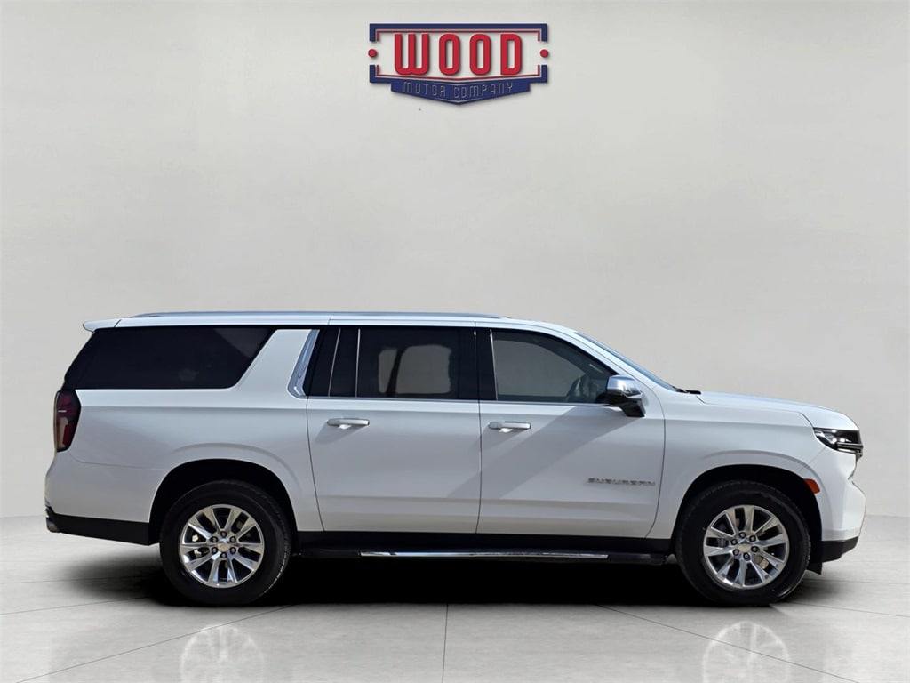 CARFAX One-Owner. Clean CARFAX. Suburban Premier, 4D Sport Utility, EcoTec3 5.3L V8, 10-Speed Automatic with Overdrive, 4WD, Summit White, Jet Black w/Perforated Leather Seating Surfaces, 1st & 2nd Row Color-Keyed Carpeted Floor Mats, 2-Speed Active Electronic AutoTrac Transfer Case, 3rd Row 60/40 Power-Folding Split-Bench, Auto-Dimming Inside Rear-View Mirror, Automatic temperature control, Bose 10-Speaker Surround w/CenterPoint, Bright Front & Rear Door Sill Plates, Chrome Door Handles w/Body-Color Strip, Chrome Mirror Caps, Color-Keyed Carpeting Floor Covering, Driver & Front Outboard Passenger Airbags, Dual Exhaust System, Enhanced Driver Information Center, Floor Console, Front dual zone A/C, Hands-Free Rear Power Programmable Liftgate, Heated & Ventilated Driver & Front Passenger Seats, Heated 2nd Row Outboard Seats, Heated Driver & Front Passenger Seats, Heated Steering Wheel, Hill Descent Control, Infotainment Display, Lane Change Alert w/Side Blind Zone Alert, LED Daytime Running Lamps, Memory seat, Memory Settings, Navigation System, Outside Heated Power-Adjustable Mirrors, Power driver seat, Power Liftgate, Power Release 2nd Row Bucket Seats, Power Tilt & Telescopic Steering Column, Power windows, Preferred Equipment Group 1LZ, Rear air conditioning, Rear Cross Traffic Alert, Remote keyless entry, Remote Start, Safety Alert Seat, SiriusXM Radio w/360L, Steering wheel memory, Steering wheel mounted audio controls, Universal Home Remote, Wireless Charging, Wrapped Steering Wheel. Summit White 2023 Chevrolet Suburban Premier 4WD 10-Speed Automatic with Overdrive EcoTec3 5.3L V8