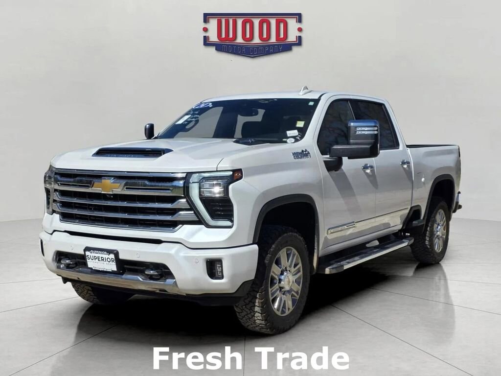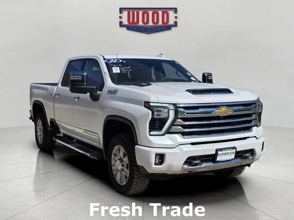 CARFAX One-Owner. Clean CARFAX. Silverado 2500HD High Country, 4D Crew Cab, 6.6L V8, 10-Speed Automatic, 4WD, Iridescent Pearl Tricoat, Jet Black/Umber w/Perforated Leather Seat Trim, 10-Way Power Driver Seat Adjuster w/Lumbar, 10-Way Power Passenger Seat Adjuster w/Lumbar, 120-Volt Bed Mounted Power Outlet, 120-Volt Interior Power Outlet, 170 Amp Alternator, 6 Rectangular Chromed Tubular Assist Steps, Auto-Dimming Inside Rear-View Mirror, Automatic temperature control, Bed View Camera w/2 Trailer Camera Provisions, Black Chevytec Spray-On Bedliner, Bluetooth® For Phone, BOSE Premium 7-Speaker Sound System, Chevrolet Connected Access Capable, Chrome Door Handles, Chrome Mirror Caps, Color-Keyed Carpeting Floor Covering, Compass, Deep-Tinted Glass, Electric Rear-Window Defogger, Electronic Cruise Control w/Set & Resume Speed, Electronic Stability Control, EZ Lift Power Lock & Release Tailgate, Front Bucket Seats, Front Carpeted Floor Mats, Front Chrome Recovery Hooks, Front dual zone A/C, Front LED Fog Lamps, Front Rain-Sensing Wipers, Fully automatic headlights, Garage door transmitter, Heated 2nd Row Outboard Seats, Heated Driver & Front Outboard Passenger Seating, Heated front seats, Heated rear seats, Heated Steering Wheel, Heated steering wheel, Hitch Guidance w/Hitch View, Illuminated entry, In-Vehicle Trailering App System, Keyless Open & Start, LED Cargo Area Lighting, Manual Tilt & Telescoping Steering Column, Memory seat, OnStar & Chevrolet Connected Services Capable, Perforated Leather Seat Trim, Polished Exhaust Tip, Power Door Locks, Power Front Windows w/Driver Express Up/Down, Power Front Windows w/Passenger Express Up/Down, Power Rear Windows w/Express Down, Power Sliding Rear Window w/Defogger, Power windows, Preferred Equipment Group 3LZ, Push Button Start, Pwr Up/Down Tailgate Function w/Pwr Lock & Release, Rear Carpeted Floor Mats, Rear Cross Traffic Alert, Rear Wheelhouse Liners, Remote keyless entry, Remote Vehicle Starter System, SiriusXM w/360L, Standard Tailgate, Steering Wheel Audio Controls, Steering wheel mounted audio controls, Suspension Package, Trailer Camera Provisions, Ultrasonic Front & Rear Park Assist, Unauthorized Entry Theft-Deterrent System, Universal Home Remote, Up-Level Rear Seat w/Storage Package, Ventilated Driver & Front Passenger Seats, Ventilated front seats, Wi-Fi Hotspot Capable, Wireless Charging, Wireless Phone Projection, Wrapped Steering Wheel. Iridescent Pearl Tricoat 2024 Chevrolet Silverado 2500HD High Country 4WD 10-Speed Automatic 6.6L V8