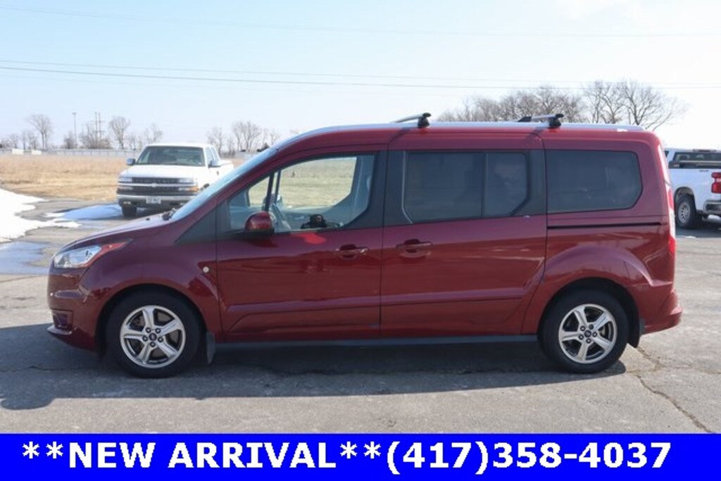 Red 2019 Ford Transit Connect Titanium FWD 8-Speed Automatic I4 3.80 Axle Ratio, 3rd row seats: bucket, Air Conditioning, Auto-dimming Rear-View mirror, Automatic temperature control, BLIS Blind Spot Information System, Bodyside moldings, Brake assist, Bumpers: chrome, Compass, Delay-off headlights, Driver door bin, Driver vanity mirror, Electronic Stability Control, Exterior Parking Camera Rear, Forward & Reverse Sensing System, Front Bucket Seats, Front Center Armrest w/Storage, Front dual zone A/C, Front fog lights, Front reading lights, Fully automatic headlights, Heated door mirrors, Heated front seats, High-Intensity Discharge Headlights, Illuminated entry, Lane-Keeping Assist, Leather Heated Front Bucket Seats, Leather Shift Knob, Low tire pressure warning, Navigation System, Order Code 310A, Outside temperature display, Overhead console, Panoramic Fixed Glass Vista Roof, Passenger door bin, Passenger vanity mirror, Power Adjust PowerFold Heated Exterior Mirrors, Power door mirrors, Power driver seat, Power steering, Power windows, Rain sensing wipers, Rear air conditioning, Rear Parking Sensors, Rear window defroster, Rear window wiper, Remote keyless entry, Roof Rack w/Cross Bars, Roof Rails, Speed control, Split folding rear seat, Steering wheel mounted audio controls, Tachometer, Telescoping steering wheel, Tilt steering wheel, Titanium Premium Package, Trip computer, Variably intermittent wipers, Wheels: 16" 5-Spk Premium Dark Stainless-Painted.