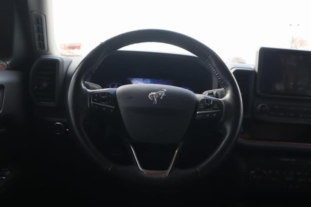 Gray Metallic 2021 Ford Bronco Sport Badlands 4WD 8-Speed Automatic EcoBoost 2.0L I4 GTDi DOHC Turbocharged VCT 3.80 Axle Ratio, Auto High-beam Headlights, Auto-Dimming Rear-View Mirror, Badlands Package, Body-Colored Door Handles, Brake assist, Class II Trailer Tow Package w/Trailer Sway Control, Compass, Driver door bin, Driver vanity mirror, Dual-Zone Electronic Automatic Temperature Control, Electronic Stability Control, Equipment Group 400A, Evasive Steering Assist, Exterior Parking Camera Rear, Ford Co-Pilot360 Assist+, Front & Rear Floor Liners w/Carpet Mats, Front Bucket Seats, Front Center Armrest, Front fog lights, Front License Plate Bracket, Front reading lights, Fully automatic headlights, HD Radio, Heated front seats, Heated Leather-Wrapped Steering Wheel, Illuminated entry, Intelligent Adaptive Cruise Control w/Stop & Go, Leather Trimmed Heated Sport Contour Bucket Seats, Low tire pressure warning, Occupant sensing airbag, Outside temperature display, Overhead airbag, Overhead console, Panic alarm, Passenger door bin, Passenger vanity mirror, Power driver seat, Power Moonroof, Power steering, Power windows, Rear reading lights, Rear seat center armrest, Rear window wiper, Remote keyless entry, Remote Start System, Reverse Sensing System, Roof rack: rails only, Security system, Speed-sensing steering, Speed-Sensitive Wipers, Split folding rear seat, Steering wheel mounted audio controls, SYNC 3/Apple CarPlay/Android Auto, Tachometer, Telescoping steering wheel, Tilt steering wheel, Trip computer, Unique Cloth Heated Sport Contour Bucket Seats, Variably intermittent wipers, Voice-Activated Touchscreen Navigation System, Wheels: 17" Carbonized Gray-Painted Aluminum, Wireless Charging Pad.