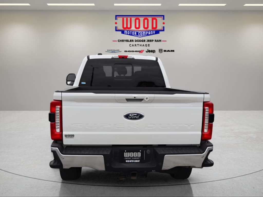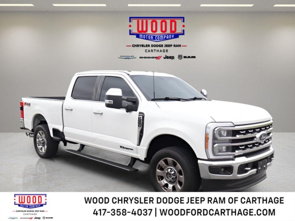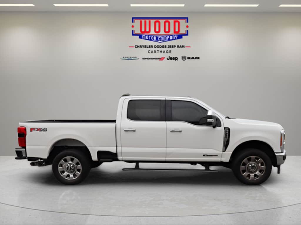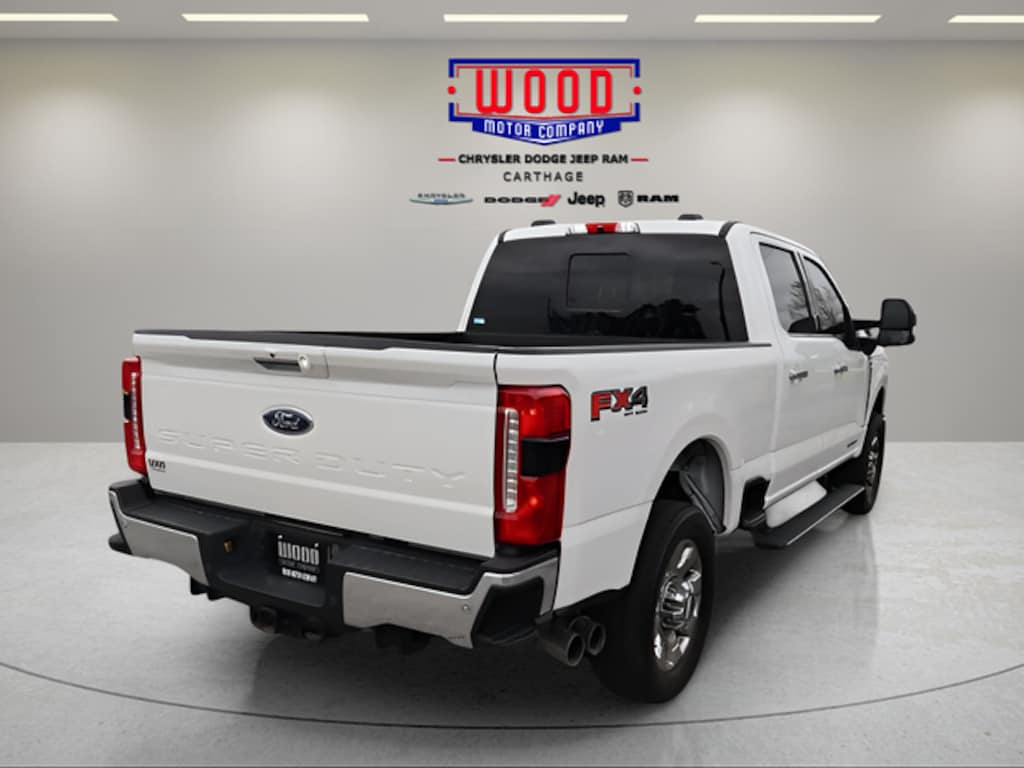 White Metallic 2023 Ford F-350SD Lariat 4WD 10-Speed Automatic Power Stroke 6.7L V8 DI 32V OHV Turbodiesel 4WD, 410 Amp Dual Alternators, 5th Wheel/Gooseneck Hitch Prep Package, 6" Angular Bright Anodized Step Bars, Adjustable pedals, All-Weather Floor Mats, Auto High-beam Headlights, Auto tilt-away steering wheel, Auto-dimming Rear-View mirror, Automatic temperature control, Brake assist, Bumpers: chrome, Chrome Door Handles, Chrome Exhaust Tip, Chrome Package, Compass, Delay-off headlights, Driver door bin, Driver vanity mirror, Electronic Stability Control, Electronic-Locking w/3.31 Axle Ratio, Exterior Parking Camera Rear, Flow-Through Console, Front Center Armrest, Front dual zone A/C, Front fog lights, Front License Plate Bracket, Fully automatic headlights, FX4 Off-Road Package, Garage door transmitter, Heated door mirrors, Heated front seats, Heated steering wheel, Hill Descent Control, Illuminated entry, Leather steering wheel, LED Roof Clearance Lights, Low tire pressure warning, Memory seat, Navigation system: Connected Navigation, Off-Road Specifically Tuned Shock Absorbers, Order Code 618A, Outside temperature display, Overhead console, Panic alarm, Passenger door bin, Passenger vanity mirror, Pedal memory, Power door mirrors, Power driver seat, Power passenger seat, Power steering, Power windows, Power-Deployable Running Boards, Rain sensing wipers, Rapid-Heat Supplemental Cab Heater, Rear reading lights, Rear seat center armrest, Rear window defroster, Remote keyless entry, Security system, Speed control, Split folding rear seat, Steering wheel memory, Steering wheel mounted audio controls, SYNC 4 w/Enhanced Voice Recognition, Tachometer, Telescoping steering wheel, Tilt steering wheel, Trip computer, Turn signal indicator mirrors, Unique Chrome Mirror Caps, Unique FX4 Off-Road Box Decal, Upfitter Switches (6), Variably intermittent wipers, Ventilated front seats, Wheels: 20" Chrome PVD Aluminum.