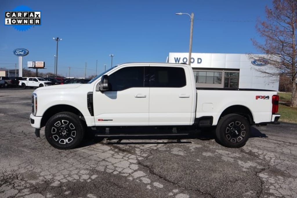 Star White Metallic Tri-Coat 2025 Ford F-250SD Platinum 4WD 10-Speed Automatic 6.7L High Output Power Stroke V8 Diesel 4WD, Adjustable pedals, Air Conditioning, Auto High-beam Headlights, Auto tilt-away steering wheel, Auto-dimming Rear-View mirror, Automatic temperature control, Brake assist, Bumpers: body-color, Compass, Delay-off headlights, Driver door bin, Driver vanity mirror, Electronic Stability Control, Engine Block Heater, Flow-Through Console, Front Bucket Seats, Front Center Armrest, Front dual zone A/C, Front fog lights, Front License Plate Bracket, Front reading lights, Fully automatic headlights, FX4 Off-Road Package, Garage door transmitter, Heads-Up Display, Heated door mirrors, Heated front seats, Heated rear seats, Heated steering wheel, High Capacity 11.6" Axle Upgrade Package, Hill Descent Control, Illuminated entry, Leather steering wheel, Low tire pressure warning, Memory seat, Navigation System, Off-Road Specifically Tuned Shock Absorbers, Order Code 703A, Outside temperature display, Overhead console, Panic alarm, Passenger door bin, Passenger vanity mirror, Pedal memory, Power door mirrors, Power driver seat, Power passenger seat, Power steering, Power windows, Pro Power Onboard - 2kW, Rain sensing wipers, Rear reading lights, Rear seat center armrest, Rear step bumper, Rear window defroster, Remote keyless entry, Security system, Speed control, Split folding rear seat, Steering wheel memory, Steering wheel mounted A/C controls, Steering wheel mounted audio controls, Tachometer, Telescoping steering wheel, Tilt steering wheel, Traction control, Trip computer, Turn signal indicator mirrors, Twin Panel Power Moonroof, Unique FX4 Off-Road Box Decal, Unique Platinum Leather 40/Console/40 Seats, Upfitter Switches (6), Variably intermittent wipers, Ventilated front seats.
