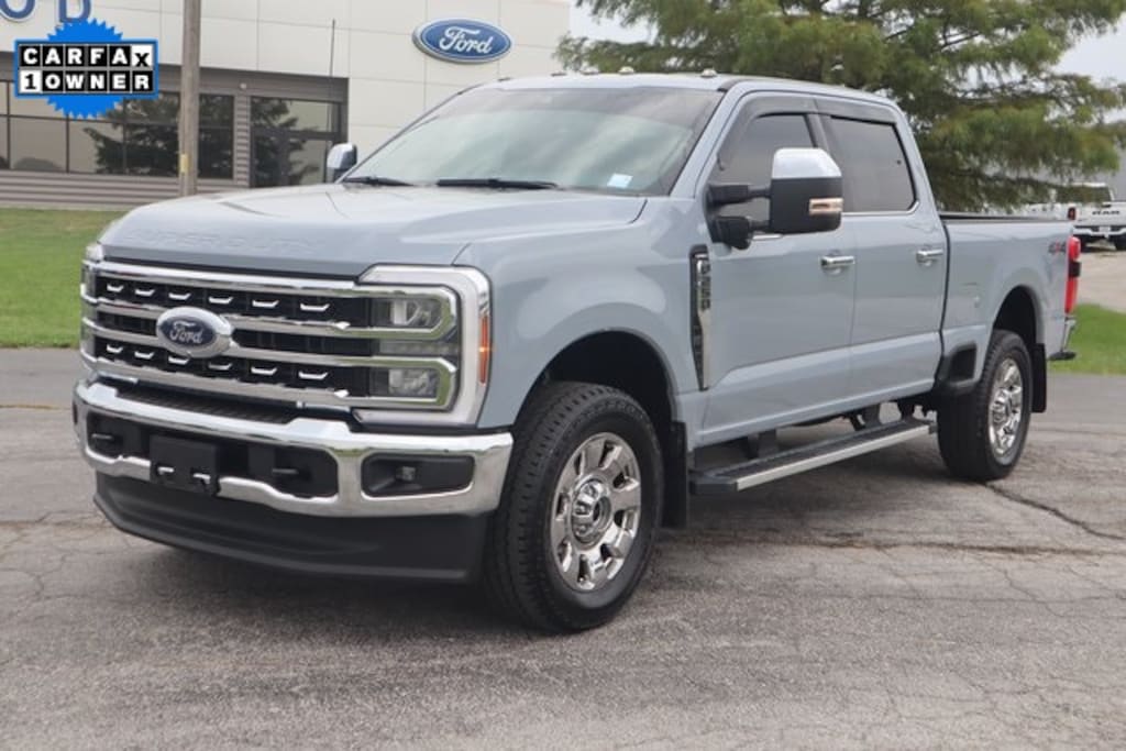 Glacier Gray Metallic Tri-Coat 2025 Ford F-250SD Lariat 4WD 10-Speed Automatic 7.3L V8 PFI SOHC 16V Federal 405hp 4WD, 3.73 Axle Ratio, 5th Wheel/Gooseneck Hitch Prep Package, 6" Angular Bright Anodized Step Bars, Adjustable pedals, All-Weather Floor Mats, Auto High-beam Headlights, Auto-dimming Rear-View mirror, Automatic temperature control, BLIS w/Cross-Traffic Alert, Brake assist, Bumpers: chrome, Chrome Door Handles, Chrome Exhaust Tip, Chrome Package, Compass, Delay-off headlights, Driver door bin, Driver vanity mirror, Electronic Stability Control, F-250 >10K GVWR Package, Flow-Through Console, Front & Rear Wheel Well Liners (Pre-Installed), Front ActiveX Trimmed 40/Console/40 Seats, Front Bucket Seats, Front Center Armrest, Front dual zone A/C, Front fog lights, Front License Plate Bracket, Front reading lights, Front Splash Guards/Mud Flaps (Pre-Installed), Fully automatic headlights, Garage door transmitter, Heated door mirrors, Heated front seats, Heated rear seats, Heated steering wheel, Illuminated entry, LED Roof Clearance Lights, Low tire pressure warning, Memory seat, Navigation System, Order Code 608A, Outside temperature display, Overhead console, Panic alarm, Passenger door bin, Passenger vanity mirror, Pedal memory, Power door mirrors, Power driver seat, Power passenger seat, Power steering, Power windows, Power-Sliding Rear-Window w/Defrost, Privacy Glass, Radio: B&O Sound System by Bang & Olufsen, Rain sensing wipers, Rear Parking Sensors, Rear reading lights, Rear seat center armrest, Rear Splash Guards/Mud Flaps (Pre-Installed), Rear step bumper, Rear window defroster, Remote keyless entry, Security system, SiriusXM Radio w/360L, Speed control, Split folding rear seat, Steering wheel mounted audio controls, SYNC 4 w/Enhanced Voice Recognition, Tachometer, Telescoping steering wheel, Tilt steering wheel, Tough Bed Spray-In Bedliner, Traction control, Trip computer, Turn signal indicator mirrors, Unique Chrome Mirror Caps, Variably intermittent wipers, Ventilated front seats, Wheels: 20" Chrome PVD Aluminum.