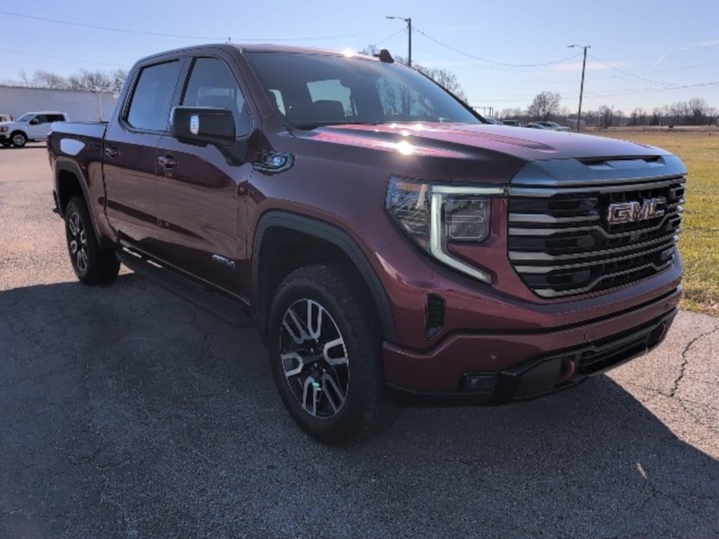 Volcanic Red Tintcoat 2024 GMC Sierra 1500 AT4 4WD 10-Speed Automatic 3.0L I6 10-Speed Automatic, 4WD, Jet Black With Kalahari Accents Leather, 10-Way Power Driver Seat Adjuster w/Lumbar, 10-Way Power Passenger Seat Adjuster w/Lumbar, 120-Volt Bed Mounted Power Outlet, 120-Volt Interior Power Outlet, 2 Charge/Data USB Ports Inside Center Console, 2 Type-C Charge-Only Rear USB Ports, 2 USB Ports, 220 Amp Alternator, 3.23 Rear Axle Ratio, Apple CarPlay/Android Auto, AT4 Preferred Package, AT4 Premium Package, Auto High-beam Headlights, Auto-dimming Rear-View mirror, Auto-Locking Rear Differential, Automatic Emergency Braking, Automatic temperature control, Bed View Camera, Black Chrome Header & Grille Insert Bars, Block heater, Brake assist, Buckle to Drive, Bumpers: body-color, Color-Keyed Carpeting Floor Covering, Compass, Deep-Tinted Glass, Delay-off headlights, Driver door bin, Driver Memory, Driver vanity mirror, Electric Rear-Window Defogger, Electronic Stability Control, Engine Block Heater, Floor-Mounted Center Console, Following Distance Indicator, Forward Collision Alert, Front Bucket Seats, Front Center Armrest, Front dual zone A/C, Front fog lights, Front Pedestrian Braking, Front Prem Floor Liners w/Removable Carpet Insert, Front Rain-Sensing Wipers, Front reading lights, Fully automatic headlights, GMC Connected Access Capable, HD Surround Vision, Heated 2nd Row Outboard Seats, Heated Driver & Front Outboard Passenger Seating, Heated front seats, Heated rear seats, Heated steering wheel, Heavy-Duty Air Filter, Hill Descent Control, Hitch Guidance, Hitch View, Illuminated entry, In-Vehicle Trailering System App, Integrated Trailer Brake Controller, Keyless Open & Start, Lane Keep Assist w/Lane Departure Warning, LED Cargo Area Lighting, Memory seat, Multicolor 15" Diagonal Head-Up Display, Navigation System, Off-Road High Clearance Step (LPO), Off-Road Suspension, OnStar & GMC Connected Services Capable, Outside temperature display, Overhead console, Panic alarm, Passenger door bin, Passenger vanity mirror, Perforated Front Leather Seat Trim, Perimeter Lighting, Power Door Locks, Power driver seat, Power Front Passenger Windows w/Express Up/Down, Power Front Windows w/Driver Express Up/Down, Power passenger seat, Power Rake & Telescoping Steering Column, Power Rear Windows w/Express Down, Power Sliding Rear Window w/Rear Defogger, Power steering, Power Sunroof, Power windows, Preferred Equipment Group 4SB, Premium Bose 7-Speaker Sound System, Push Button Start, Rain sensing wipers, Rear Camera Mirror, Rear Cross Traffic Braking, Rear Pedestrian Detection, Rear Prem Floor Liners w/Removable Carpet Insert, Rear reading lights, Rear seat center armrest, Rear Wheelhouse Liners, Rear window defroster, Red Recovery Hooks, Remote keyless entry, Remote Vehicle Starter System, Safety Alert Seat, Security system, SiriusXM w/360L, Speed control, Speed-sensing steering, Split folding rear seat, Spray-On Pickup Bedliner w/AT4 Logo, Steering Wheel Audio Controls, Steering wheel mounted audio controls, Tachometer, Technology Package, Telescoping steering wheel, Theft Deterrent System (Unauthorized Entry), Tilt steering wheel, Traction control, Trailer Camera Provisions, Trailer Side Blind Zone Alert, Trailering Package, Trip computer, Ultrasonic Front & Rear Park Assist, Universal Home Remote, Variably intermittent wipers, Ventilated Driver & Front Passenger Seats, Ventilated front seats, Voltmeter, Wheels: 20" x 9" Machined Aluminum, Wi-Fi Hotspot Capable, Wireless Apple CarPlay/Wireless Android Auto, Wireless Charging.