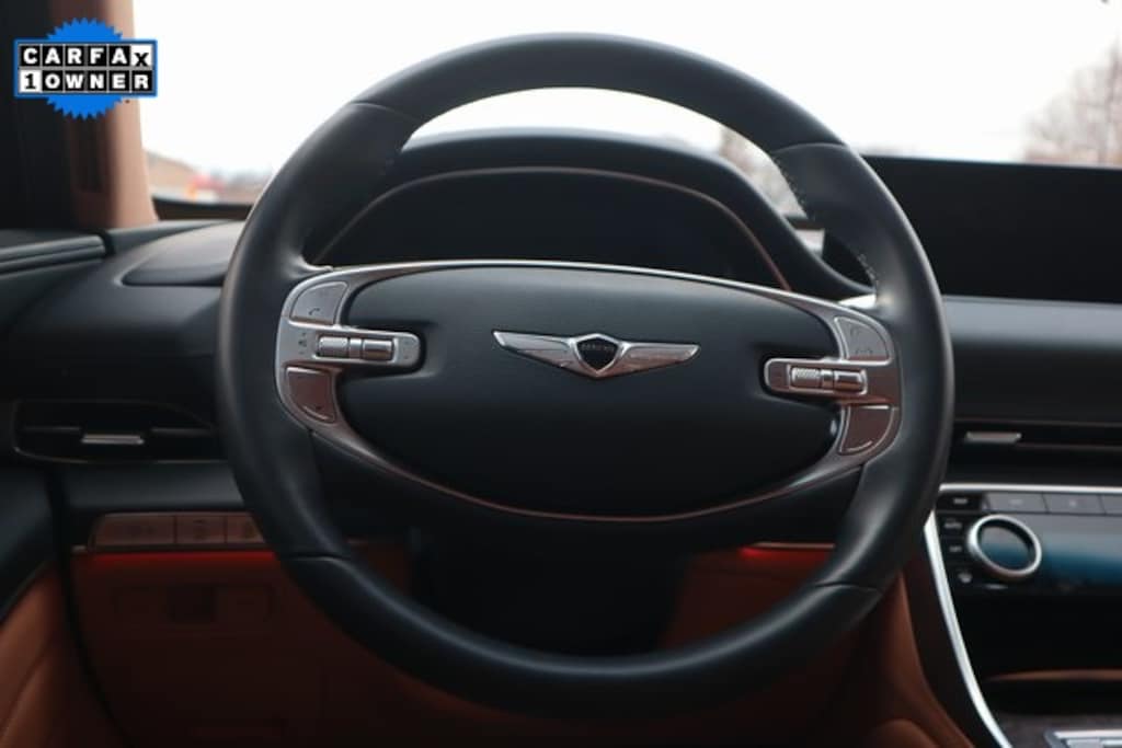 Savile Silver 2024 Genesis GV80 3.5T AWD 8-Speed Automatic 3.5L DOHC 3-Zone Climate Control, Advanced Package, Air Conditioning, Android Auto & Apple CarPlay, Auto High-beam Headlights, Auto tilt-away steering wheel, Auto-dimming door mirrors, Auto-dimming Rear-View mirror, Automatic temperature control, Blind-Spot View Monitor, Brake assist, Bumpers: body-color, Compass, Delay-off headlights, Driver door bin, Driver vanity mirror, Electronic Stability Control, Ergo Motion Driver Seat, Exterior Parking Camera Rear, First Aid Kit, Front Bucket Seats, Front Center Armrest, Front dual zone A/C, Front reading lights, Fully automatic headlights, Garage door transmitter: HomeLink, Genuine wood console insert, Genuine wood dashboard insert, Genuine wood door panel insert, Head-Up Display, Heated & Ventilated Front Bucket Seats, Heated 2nd Row Seats, Heated door mirrors, Heated front seats, Heated steering wheel, Illuminated entry, Leather Seating Surfaces, Leather steering wheel, Leatherette Seating Surfaces, Memory seat, Nappa Leather Seating Surfaces, Navigation System, Option Group 06, Outside temperature display, Overhead console, Panic alarm, Passenger door bin, Passenger vanity mirror, Power Cushion Extension & Bolster, Power door mirrors, Power driver seat, Power Folding 3rd Row Seat, Power Liftgate, Power moonroof, Power passenger seat, Power steering, Power windows, Radio: AM/FM/SiriusXM/HD Lexicon Prem Audio System, Radio:14.5" Navigation System w/AM/FM/HD Radio, Rain sensing wipers, Rear air conditioning, Rear Bumper Applique, Rear reading lights, Rear seat center armrest, Rear window defroster, Rear window wiper, Remote keyless entry, Remote Smart Parking Assist, Reverse Parking Collision-Avoidance Assist, Seatback Cargo Mat, Security system, Speed control, Speed-Sensitive Wipers, Split folding rear seat, Steering wheel memory, Steering wheel mounted audio controls, Surround View Monitor, Tachometer, Telescoping steering wheel, Tilt steering wheel, Trip computer, Variably intermittent wipers, Ventilated front seats, Wheels: 20" x 8.5J Medium Metallic Gray Alloy.