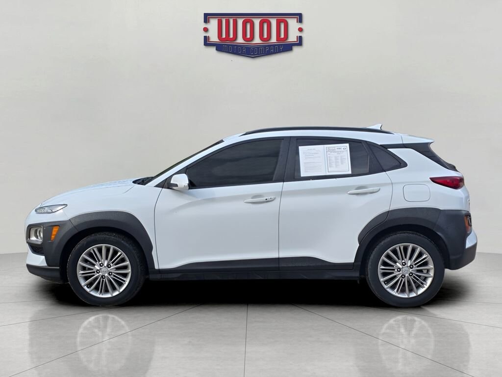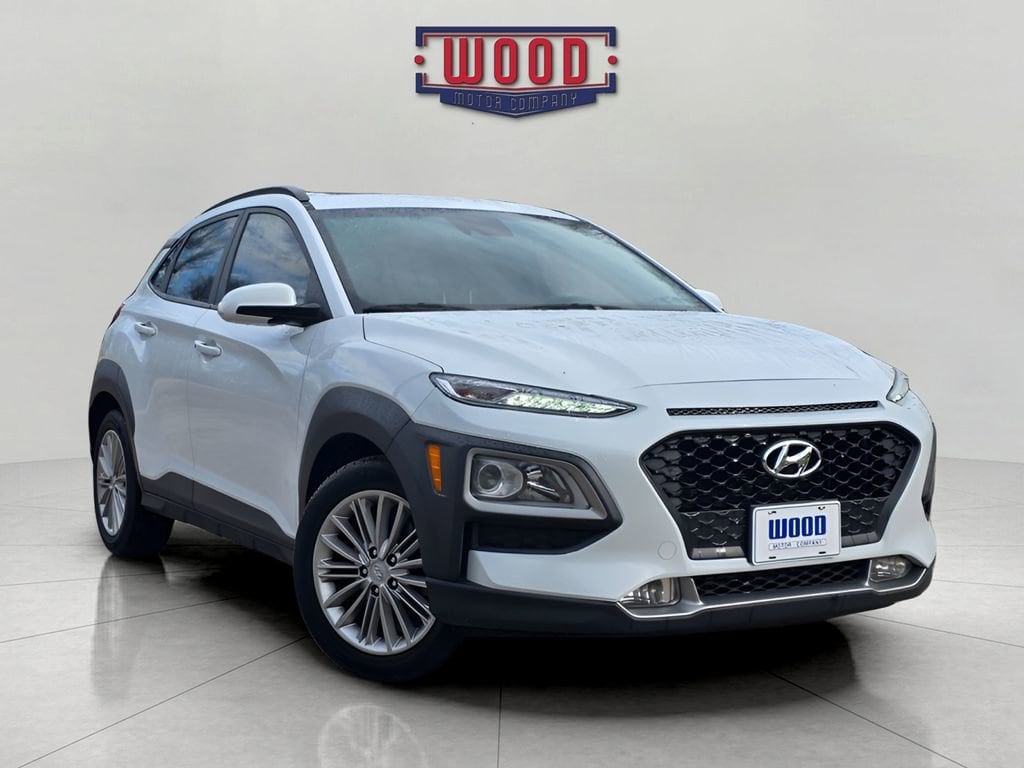 Kona SEL Plus, 4D Sport Utility, I4, 6-Speed Automatic, AWD, Chalk White, Black w/Cloth Seat Trim, Apple CarPlay & Android Auto, Electronic Stability Control, Exterior Parking Camera Rear, Front Bucket Seats, Garage door transmitter: HomeLink, Heated Front Bucket Seats, Heated front seats, Option Group 01, Power driver seat, Power moonroof, Power windows, Radio: AM/FM/MP3/HD Radio/SiriusXM Audio System, Remote keyless entry, Speed control, Steering wheel mounted audio controls, Telescoping steering wheel, Traction control. Chalk White 2021 Hyundai Kona SEL Plus AWD 6-Speed Automatic I4