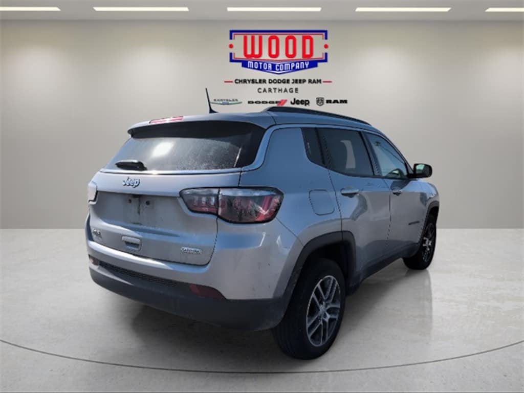 Billet Silver Metallic Clearcoat 2018 Jeep Compass Latitude 4WD 9-Speed Automatic 2.4L I4 4WD, 115V Auxiliary Power Outlet, 3.833 Axle Ratio, 4-Way Power Lumbar Adjust, 7.0" Touch Screen Display, Air Conditioning, Auto-Dimming Rear-View Mirror, Brake assist, Bumpers: body-color, Cluster 7.0" Color Driver Info Display, Compass, Delay-off headlights, Driver door bin, Driver vanity mirror, Electronic Stability Control, Front Center Armrest w/Storage, Front fog lights, Front reading lights, Fully automatic headlights, Heated door mirrors, Illuminated entry, Low tire pressure warning, Manufacturer's Statement of Origin, Outside temperature display, Overhead console, Panic alarm, ParkView Rear Back-Up Camera, Passenger door bin, Passenger vanity mirror, Popular Equipment Group, Power 8-Way Driver/Manual 6-Way Passenger Seats, Power door mirrors, Power steering, Power windows, Premium Cloth/Vinyl Bucket Seats, Quick Order Package 27J, Radio: Uconnect 4 w/7" Display, Rear seat center armrest, Rear window defroster, Rear window wiper, Remote keyless entry, Roof rack: rails only, Speed control, Split folding rear seat, Spoiler, Steering wheel mounted audio controls, Tachometer, Telescoping steering wheel, Tilt steering wheel, Trip computer, Variably intermittent wipers, Wheels: 17" x 7.0" Silver Painted Aluminum.