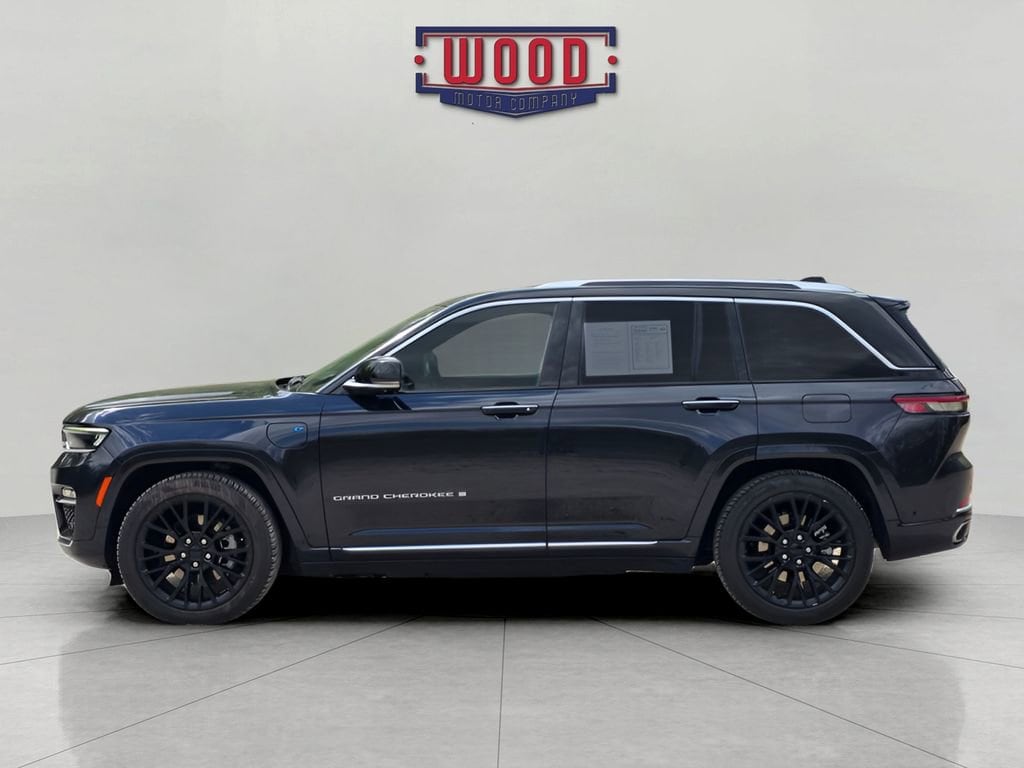 CARFAX One-Owner. Grand Cherokee Summit Reserve 4xe, 4D Sport Utility, 2.0L I4 DOHC, 8-Speed Automatic, 4WD, Midnight Sky, Global Black w/Nappa Leather Seats or Palermo Leather Seats, 19 Speakers, 2nd-Row Manual Window Shades, Advanced Protech Group IV, Auto High-beam Headlights, Automatic temperature control, Deluxe Headliner, Electronic Stability Control, Front Bucket Seats, Front dual zone A/C, Fully automatic headlights, Garage door transmitter, Heads-Up Display, Heated front seats, Heated rear seats, Heated steering wheel, Luxury Tech Group V, Memory seat, Navigation System, Night Vision/Pedestrian-Animal Detection, Palermo Leather Door Trim, Palermo Leather Seats, Power driver seat, Power Liftgate, Power moonroof, Power windows, Quick Order Package 27U Summit Reserve, Radio: Uconnect 5 Nav w/10.1 Display, Rear air conditioning, Rear dual zone A/C, Rearview Autodim Digital Display Mirror, Remote keyless entry, Security system, Split folding rear seat, Steering wheel memory, Steering wheel mounted audio controls, Summit Reserve, Summit Reserve Badge, Telescoping steering wheel, Two Tone Paint Group, Ventilated front seats, Ventilated Rear Seats, Wheels: 21 x 9 Machined Face/Painted Aluminum, Wireless Charging Pad. Midnight Sky 2023 Jeep Grand Cherokee Summit Reserve 4xe 4WD 8-Speed Automatic 2.0L I4 DOHCA solid name you can trust... Wood Motor.