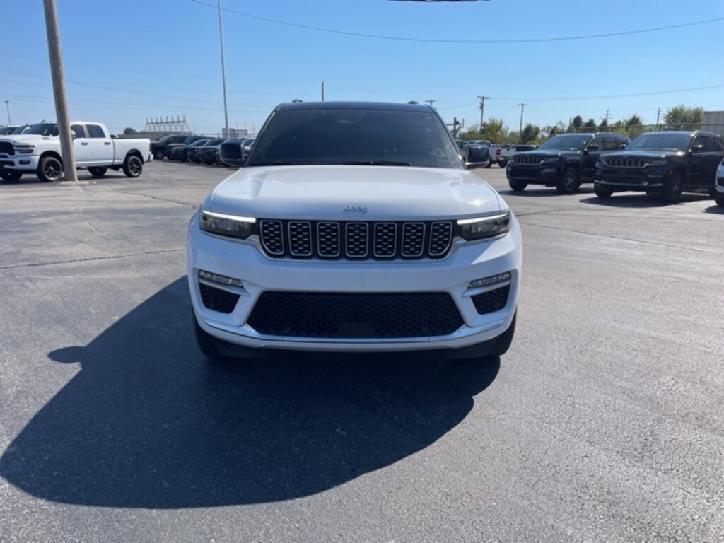 Bright White Clearcoat 2025 Jeep Grand Cherokee Summit 4WD 8-Speed Automatic 3.6L V6 24V VVT 4WD, AM/FM radio: SiriusXM with 360L, Auto High-beam Headlights, Auto-dimming door mirrors, Auto-dimming Rear-View mirror, Automatic temperature control, Auxiliary Battery, Brake assist, Bumpers: body-color, Compass, Delay-off headlights, Driver door bin, Driver vanity mirror, Electronic Stability Control, Front Bucket Seats, Front dual zone A/C, Front fog lights, Front License Plate Bracket, Front reading lights, Fully automatic headlights, Garage door transmitter, Genuine wood dashboard insert, Genuine wood door panel insert, Heated door mirrors, Heated front seats, Heated rear seats, Heated steering wheel, Illuminated entry, Leather steering wheel, Low tire pressure warning, Model Year Tracking, Nappa Leather Seats, Navigation System, Outside temperature display, Overhead console, Panic alarm, Passenger vanity mirror, Power door mirrors, Power driver seat, Power Liftgate, Power moonroof, Power passenger seat, Power steering, Power windows, Quick Order Package 23S, Radio: Uconnect 5 Nav w/10.1" Display, Rain sensing wipers, Rear air conditioning, Rear dual zone A/C, Rear reading lights, Rear seat center armrest, Rear window defroster, Rear window wiper, Remote keyless entry, Security system, Speed control, Speed-Sensitive Wipers, Split folding rear seat, Spoiler, Steering wheel memory, Steering wheel mounted audio controls, Tachometer, Telescoping steering wheel, Tilt steering wheel, Trip computer, Turn signal indicator mirrors, Variably intermittent wipers, Ventilated front seats, Voltmeter, Wheels: 20" x 8.5" Fully Painted Aluminum Silver.