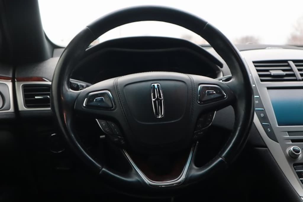 Black 2019 Lincoln MKZ Reserve AWD 6-Speed Automatic with Select-Shift 2.0L I4 AWD, Adaptive suspension, Air Conditioning, All-Weather Floor Liners, AppLink/Apple CarPlay and Android Auto, Auto High-beam Headlights, Auto tilt-away steering wheel, Auto-dimming door mirrors, Auto-dimming Rear-View mirror, Automatic temperature control, Brake assist, Bumpers: body-color, Compass, Delay-off headlights, Driver door bin, Driver vanity mirror, Electronic Stability Control, Equipment Group 300A, Exterior Parking Camera Rear, Front Bucket Seats, Front Center Armrest, Front dual zone A/C, Front reading lights, Fully automatic headlights, Garage door transmitter, Genuine wood dashboard insert, Genuine wood door panel insert, Heated door mirrors, Heated front seats, Heated rear seats, Heated steering wheel, High-Intensity Discharge Headlights, Illuminated entry, Leather steering wheel, Low tire pressure warning, Memory seat, Navigation System, Outside temperature display, Overhead console, Panic alarm, Passenger door bin, Passenger vanity mirror, Power door mirrors, Power driver seat, Power moonroof, Power passenger seat, Power steering, Power windows, Prem Leather-Trimmed Micro-Perf Heated/Cooled (G), Rain sensing wipers, Rear reading lights, Rear seat center armrest, Rear Window Blind, Rear window defroster, Remote keyless entry, Security system, Speed control, Speed-sensing steering, Speed-Sensitive Wipers, Split folding rear seat, SYNC 3, Tachometer, Telescoping steering wheel, Tilt steering wheel, Trip computer, Turn signal indicator mirrors, Variably intermittent wipers, Ventilated front seats, Wheels: 19" Satin Finished 7-Spoke Machined Alum.