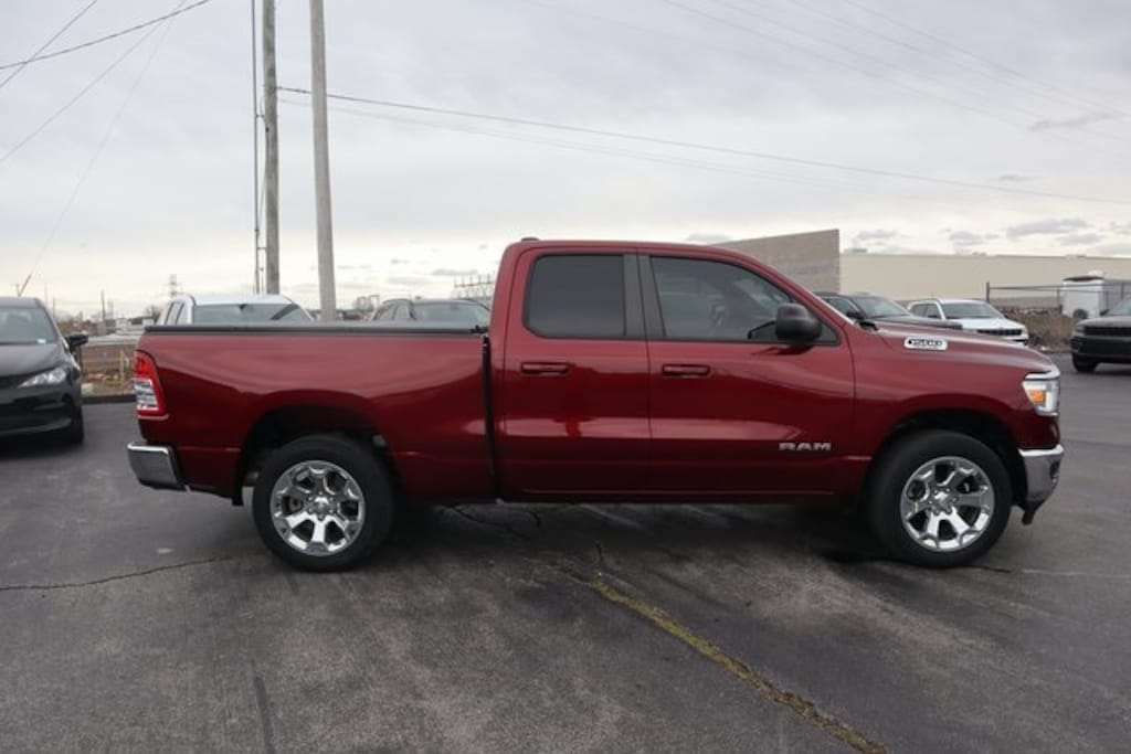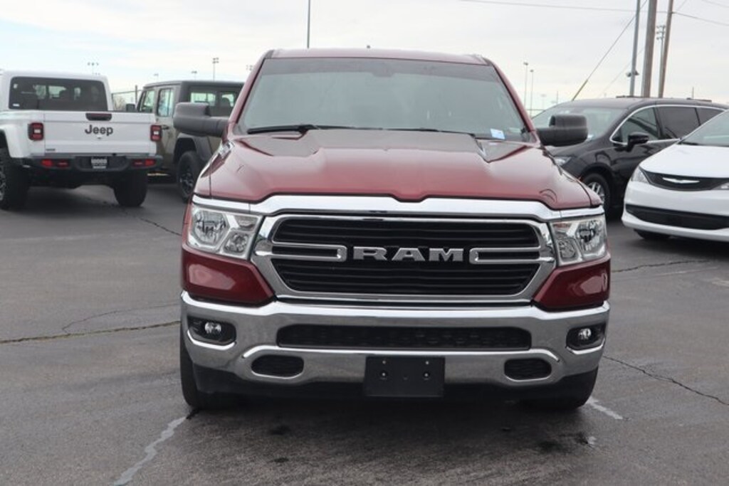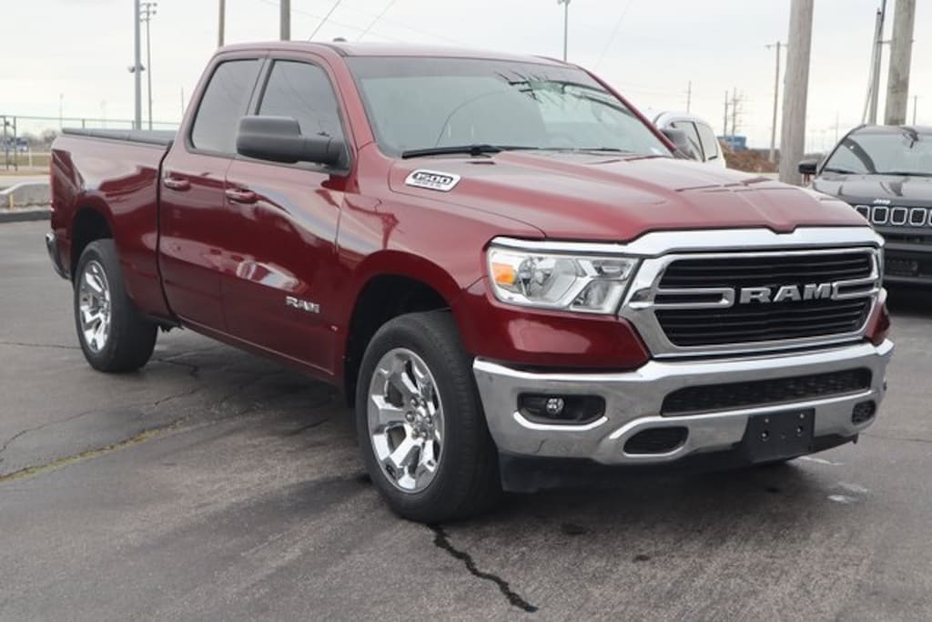 Delmonico Red Pearlcoat 2021 Ram 1500 Big Horn/Lone Star 4WD 8-Speed Automatic HEMI 5.7L V8 Multi Displacement VVT 3.21 Rear Axle Ratio, Air Conditioning, Alloy wheels, Big Horn Badge, Brake assist, Cloth Bench Seat, Compass, Delay-off headlights, Driver door bin, Electronic Stability Control, Front anti-roll bar, Front Center Armrest w/Storage, Front fog lights, Front reading lights, Front Seat Back Map Pockets, Front wheel independent suspension, Fully automatic headlights, GPS Antenna Input, Illuminated entry, Leather steering wheel, Low tire pressure warning, MOPAR Front & Rear Rubber Floor Mats, Occupant sensing airbag, Outside temperature display, Overhead airbag, Overhead console, Panic alarm, ParkView Rear Back-Up Camera, Passenger door bin, Passenger vanity mirror, Power steering, Power windows, Quick Order Package 25Z Big Horn, Radio: Uconnect 3 w/5" Display, Rear 60/40 Folding Seat, Rear anti-roll bar, Rear seat center armrest, Remote keyless entry, Remote Start System, Speed control, Split folding rear seat, Steering wheel mounted audio controls, Tachometer, Telescoping steering wheel, Tilt steering wheel, Trip computer, Variably intermittent wipers, Voltmeter, Wheels: 18" x 8" Cast-Aluminum Painted, Wheels: 20" x 9" Aluminum Chrome Clad (WRK).