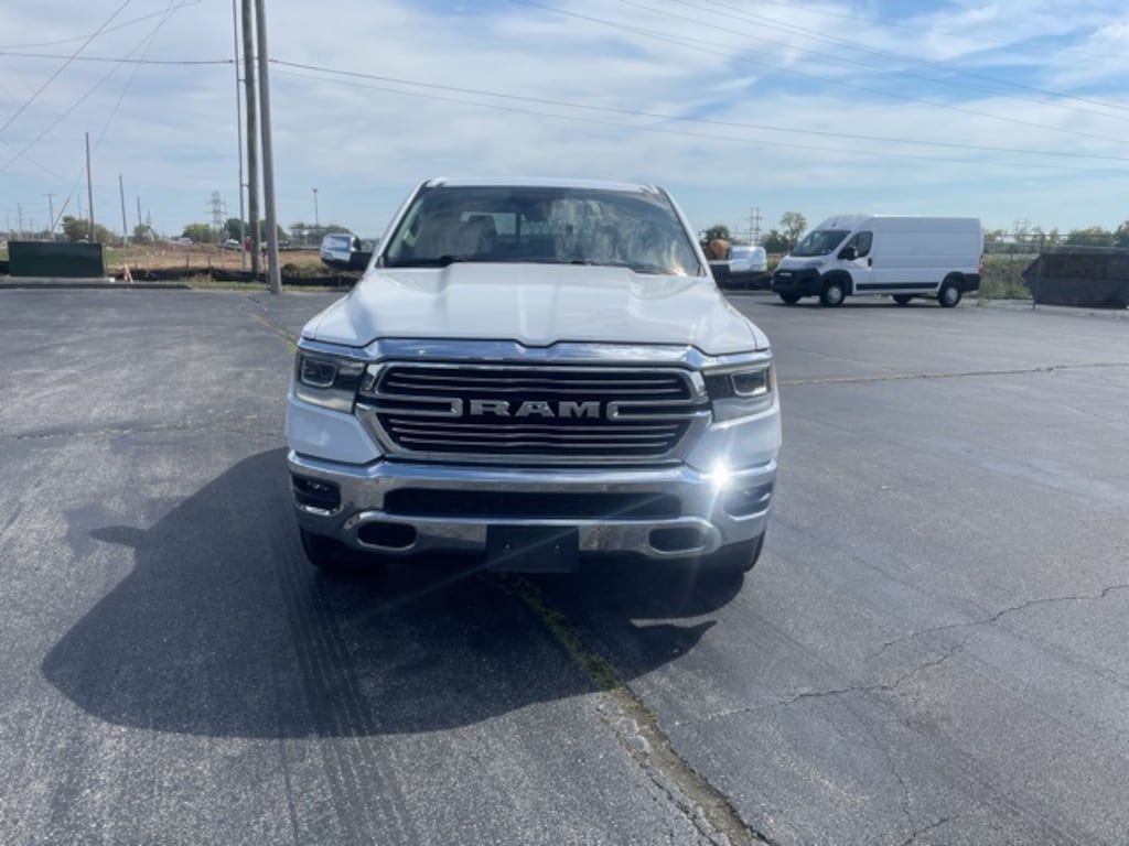 Bright White Clearcoat 2022 Ram 1500 Laramie 4WD 8-Speed Automatic HEMI 5.7L V8 Multi Displacement VVT 3 Rear Seat Head Restraints, 3.21 Rear Axle Ratio, 4 Way Front Headrests, 4G LTE Wi-Fi Hot Spot, 8.4" Touchscreen Display, Adjustable pedals, AM/FM radio: SiriusXM, Apple CarPlay, Apple CarPlay/Android Auto, Audio memory, Auto-dimming door mirrors, Auto-Dimming Exterior Driver Mirror, Auto-dimming Rear-View mirror, Automatic temperature control, Brake assist, Bumpers: chrome, Chrome Exterior Mirrors, Compass, Driver door bin, Driver Seat Memory, Driver vanity mirror, Electronic Stability Control, Exterior Mirrors Courtesy Lamps, Exterior Mirrors w/Memory, For Details, Visit DriveUconnect.com, Front Center Armrest w/Storage, Front dual zone A/C, Front reading lights, Front Seat Back Map Pockets, Garage door transmitter, Google Android Auto, GPS Antenna Input, Heated door mirrors, Heated Front Seats, Heated Steering Wheel, Heated steering wheel, Heavy-Duty Engine Cooling, Illuminated entry, Leather steering wheel, Low tire pressure warning, Memory seat, Outside temperature display, Overhead console, Panic alarm, ParkView Rear Back-Up Camera, Passenger door bin, Passenger vanity mirror, Pedal memory, Power 2-Way Driver Lumbar Adjust, Power 2-Way Passenger Lumbar Adjust, Power 8-Way Driver & Passenger Seats, Power door mirrors, Power driver seat, Power steering, Power windows, Power-Folding Mirrors, Quick Order Package 27H Laramie, Radio: Uconnect 5 W w/8.4" Display, Rear 60/40 Folding Seat, Rear seat center armrest, Rear window defroster, Remote keyless entry, Security system, Speed control, Split folding rear seat, Steering wheel mounted audio controls, Tachometer, Telescoping steering wheel, Tilt steering wheel, Trailer Brake Control, Trip computer, Variably intermittent wipers, Ventilated Front Seats, Voltmeter, Wheels: 20" x 9" Premium Paint/Polished.