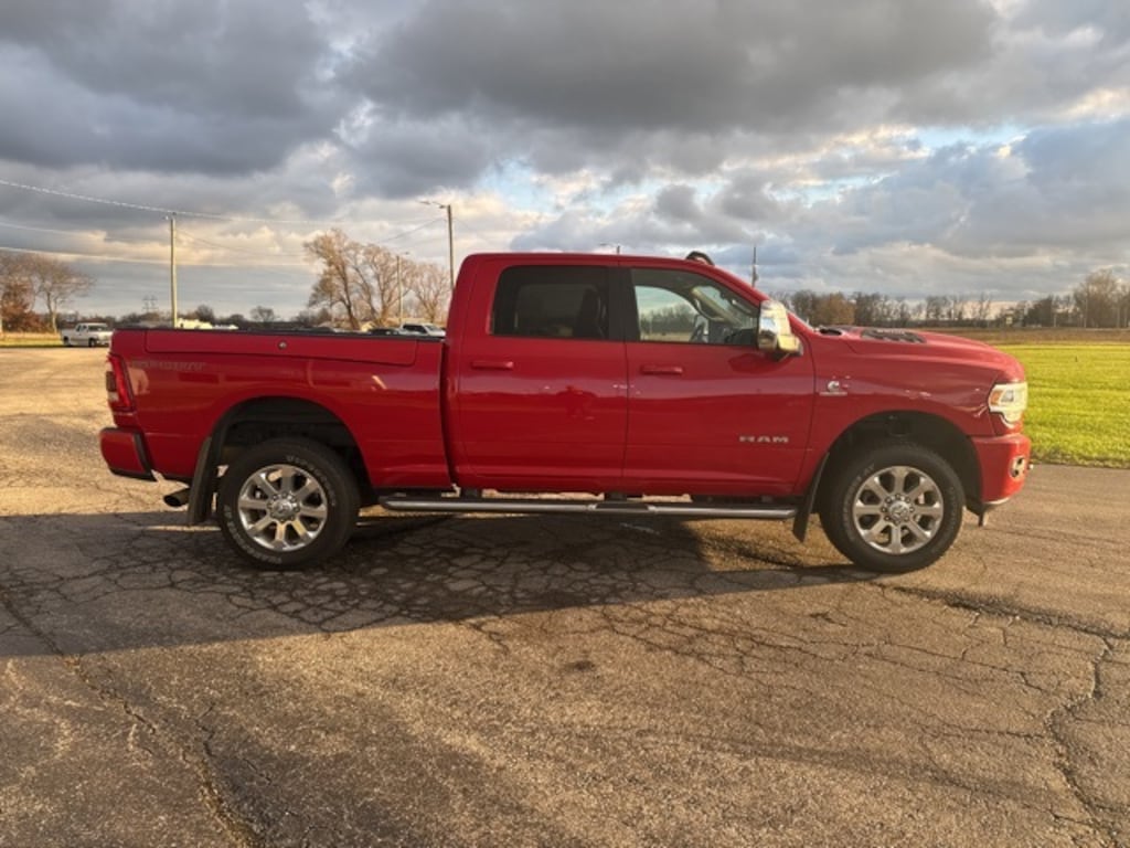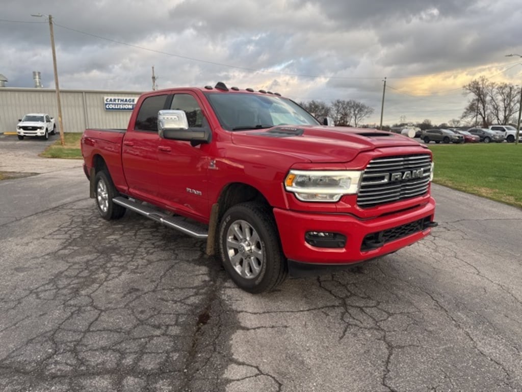 Flame Red Clearcoat 2023 Ram 2500 Laramie 4WD 6-Speed Automatic Cummins 6.7L I6 Turbodiesel 12" Touchscreen Display, 20" x 8.0" Polished Aluminum Wheels, 2nd Row In Floor Storage Bins, 3.73 Axle Ratio, 4G LTE Wi-Fi Hot Spot, Air Conditioning, Alexa Built-In, Apple CarPlay, Apple CarPlay/Android Auto, Auto Adjust In Reverse Exterior Mirrors, Auto Dim Exterior Mirror, Auto High Beam Headlamp Control, Auto Power-Folding Mirrors, Auto-Dimming Exterior Passenger Mirror, Auto-dimming Rear-View mirror, Automatic temperature control, Black Interior Accents, Blind Spot & Cross Path Detection, Body Color Grille Surround, Brake assist, Center Hub, Chrome Exterior Mirrors, Compass, Connected Travel & Traffic Services, Connectivity - US/Canada, CTR Stop Lamp w/Cargo View Camera, Dash Pass Thru Wire Circuits, Delay-off headlights, Disassociated Touchscreen Display, Driver door bin, Driver vanity mirror, Electronic Stability Control, Exterior Mirrors Courtesy Lamps, Exterior Mirrors w/Heating Element, Exterior Mirrors w/Memory, Exterior Mirrors w/Supplemental Signals, Foam Bottle Insert (Door Trim Panel), For Details, Visit DriveUconnect.com, For More Info, Call 800-643-2112, Forward & Reverse Utility Lights, Front dual zone A/C, Front LED Fog Lamps, Front License Plate Bracket, Front reading lights, Fully automatic headlights, Garage door transmitter, Global Telematics Box Module (TBM), Google Android Auto, GPS Antenna Input, GPS Navigation, HD Radio, Heated door mirrors, Heated Front Seats, Heated front seats, Heated Steering Wheel, Heated steering wheel, I/P Mounted Auxiliary Switches, Illuminated entry, Integrated Voice Command w/Bluetooth, Laramie Level 1 Equipment Group, Leather steering wheel, LED Bed Lighting, LED Reflector Headlamps, Low tire pressure warning, Manufacturer's Statement of Origin, Mirror Running Lights, Off-Road Information Pages, Outside temperature display, Overhead console, Panic alarm, ParkSense Front/Rear Park Assist System, ParkView Rear Back-Up Camera, Passenger vanity mirror, Power 2-Way Driver Lumbar Adjust, Power 2-Way Passenger Lumbar Adjust, Power Adjust 8-Way Driver Seat, Power Adjust 8-Way Front Passenger Seat, Power Adjust Mirrors, Power Adjustable Convex Aux Mirrors, Power Adjustable Pedals w/Memory, Power door mirrors, Power driver seat, Power Heated Fold Telescopic Mirrors w/Memory, Power passenger seat, Power steering, Power Sunroof, Power Telescoping Mirrors, Power windows, Quick Order Package 2HH Laramie, Radio: Uconnect 5 Nav w/12.0" Display, Radio/Driver Seat/Mirrors/Pedals Memory, Rain Sensitive Windshield Wipers, Rear Power Sliding Window, Rear reading lights, Rear seat center armrest, Rear step bumper, Rear Window Defroster, Rear window defroster, Remote Tailgate Release, Security system, Selectable Tire Fill Alert, SiriusXM Radio Service, SiriusXM w/360L, Speed control, Split folding rear seat, Sport Appearance Package, Sport Decal, Sport Performance Hood, Steering wheel mounted audio controls, Surround View Camera System, Tachometer, Tilt steering wheel, Tip Start, Towing Technology Group, Trailer Reverse Guidance, Trailer Tow Pages, Trip computer, Turn signal indicator mirrors, Variably intermittent wipers, Voltmeter, Wheels: 18" x 8.0" Polished Aluminum.
