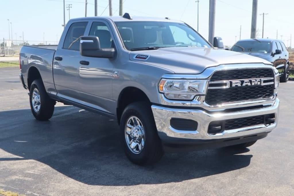 Billet Silver Metallic Clearcoat 2024 Ram 2500 Tradesman 4WD 6-Speed Automatic Cummins 6.7L I6 Turbodiesel 2 Way Rear Headrest Seat, 3.73 Axle Ratio, 40/20/40 Split Bench Seat, Air Conditioning, Anti-Spin Differential Rear Axle, Black Exterior Mirrors, Brake assist, Bright Front Bumper, Bright Rear Bumper, Center Hub, Chrome Appearance Group, Chrome Grille Surround, Chrome Headlamp Bezels, Cold Weather Group, Compass, Dash Pass Thru Wire Circuits, Delay-off headlights, Driver door bin, Electric Shift-On-The-Fly Transfer Case, Electronic Stability Control, Electronically Controlled Throttle, Engine Block Heater, Front Armrest w/Cupholders, Front reading lights, Fully automatic headlights, Global Telematics Box Module (TBM), Heavy Duty Vinyl 40/20/40 Split Bench Seat, I/P Mounted Auxiliary Switches, Illuminated entry, Integrated Voice Command w/Bluetooth, Low tire pressure warning, Manual Adjust 4-Way Driver Seat, Manual Adjust 4-Way Front Passenger Seat, Manual Folding Exterior Mirrors, Manual Telescoping Mirrors, Matte Black Mesh Grille w/Chrome, MOPAR Winter Front Grille Cover, Occupant sensing airbag, Outside temperature display, Overhead console, ParkView Rear Back-Up Camera, Passenger vanity mirror, Power steering, Power windows, Quick Order Package 2HA Tradesman, Radio: Uconnect 3 w/5" Display, Rear Folding Seat, Rear step bumper, Rear Wheelhouse Liners, Rear Window Defroster, Remote USB Port - Charge Only, Speed control, Storage Tray, Tachometer, Tilt steering wheel, Tip Start, Traction control, Tradesman Level 1 Equipment Group, Trailer Brake Control, Trailer Light Check, Variably intermittent wipers, Voltmeter, Wheels: 18" x 8.0" Steel Chrome Clad.