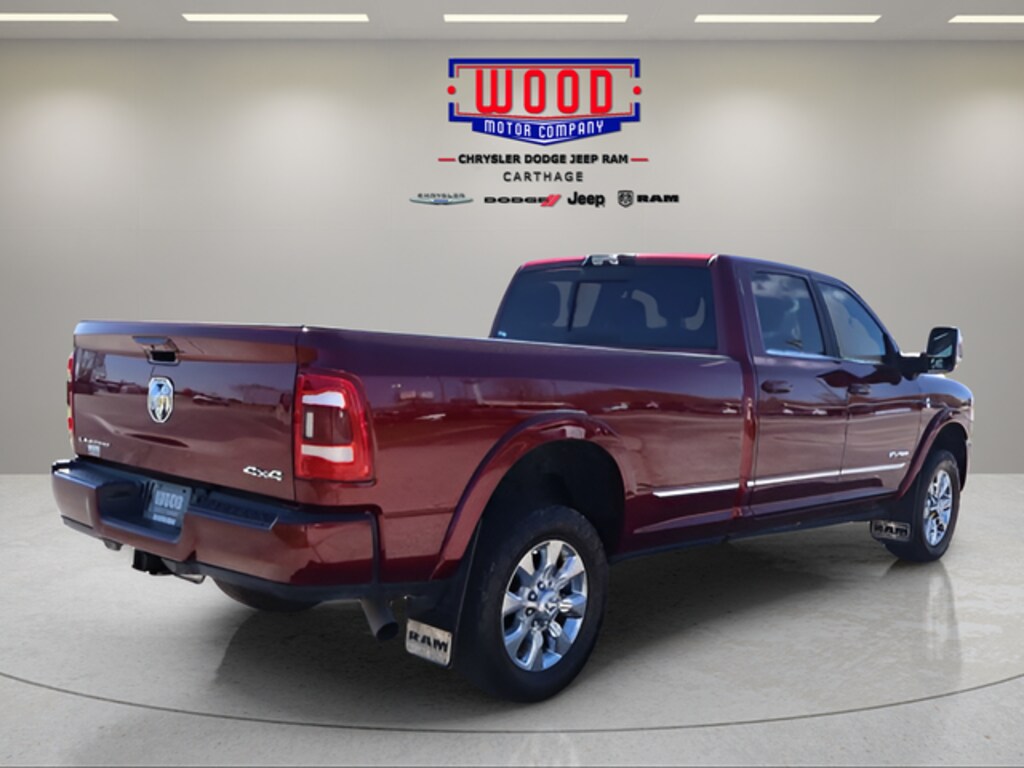 Delmonico Red Pearlcoat 2024 Ram 3500 Limited 4WD Aisin 6-Speed Automatic 6.7L I6 12" Touchscreen Display, 17 Speaker harman/kardon Premium Sound, 3.73 Axle Ratio, 4G LTE Wi-Fi Hot Spot, Adaptive Cruise Control w/Stop, Adaptive Steering System, Air Conditioning, Alexa Built-In, Apple CarPlay, Auto High-beam Headlights, Automatic temperature control, Bodyside moldings, Brake assist, Bumpers: body-color, Center Hub, Connected Travel & Traffic Services, Connectivity - US/Canada, CTR Stop Lamp w/Cargo View Camera, Delay-off headlights, Delete Spray In Bedliner, Digital Rearview Mirror, Disassociated Touchscreen Display, Driver door bin, Driver vanity mirror, Electronic Stability Control, For Details Visit DriveUconnect.com, For More Info, Call 800-643-2112, Front Bucket Seats, Front Center Armrest w/Storage, Front dual zone A/C, Front fog lights, Front License Plate Bracket, Front reading lights, Full Speed Forward Collision Warning Plus, Fully automatic headlights, Garage door transmitter, Global Telematics Box Module (TBM), Google Android Auto, GPS Antenna Input, GPS Navigation, HD Radio, Heated door mirrors, Heated front seats, Heated rear seats, Heated steering wheel, Illuminated entry, Instrument Cluster Theme 8, Lane Keep Assist, Leather steering wheel, LED Bed Lighting, Limited Leather Bucket Seats, Limited Level 1 Equipment Group, Low tire pressure warning, Luxury Door Trim Panel (CTH), Manufacturer's Statement of Origin, MOPAR Spray In Bedliner, Navigation System, Off-Road Information Pages, Outside temperature display, Overhead console, Panic alarm, ParkView Rear Back-Up Camera, Passenger vanity mirror, Power Deployable Running Boards, Power door mirrors, Power passenger seat, Quick Order Package 21M Limited, Radio: Uconnect 5 Nav w/12.0" Display, Rain sensing wipers, Ramcharger Wireless Charging Pad, Rear reading lights, Rear seat center armrest, Rear step bumper, Rear window defroster, Security system, Selectable Tire Fill Alert, SiriusXM Radio Service, SiriusXM w/360L, Split folding rear seat, Surround View Camera System, Tachometer, Tilt steering wheel, Traction control, Trailer Reverse Guidance, Trailer Tow Pages, Trip computer, Turn signal indicator mirrors, Variably intermittent wipers, Ventilated front seats, Voltmeter, Wheels: 20" x 8.0" Satin Carbon w/Chrome Insert.