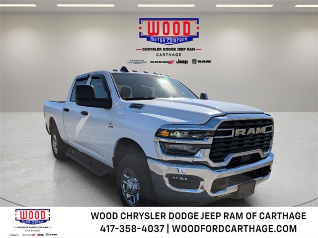 Bright White Clearcoat 2025 Ram 2500 Tradesman 4WD 8-Speed Automatic 6.7L I6 4 Way Front Headrests, 40/20/40 Split Bench Seat, 4G LTE Wi-Fi Hot Spot, 5th Wheel/Gooseneck Towing Prep Group, Apple CarPlay, Apple CarPlay/Android Auto, Black Exterior Mirrors, Brake assist, Bright Front Bumper, Bright Rear Bumper, Center Hub, Chrome Appearance Group, Chrome Grille Surround, Clearance Lamps, Compass, Connectivity - US/Canada, Delay-off headlights, Driver door bin, Electronic Stability Control, Front Center Armrest w/Storage, Front fog lights, Front License Plate Bracket, Front reading lights, Fully automatic headlights, Global Telematics Box Module (TBM), Google Android Auto, Illuminated entry, Integrated Voice Command w/Bluetooth, Low tire pressure warning, Manual Folding Exterior Mirrors, Manual Telescoping Mirrors, Matte Black Mesh Grille w/Chrome, Outside temperature display, Overhead console, Panic alarm, ParkView Rear Back-Up Camera, Passenger door bin, Passenger vanity mirror, Power steering, Power windows, Quick Order Package 24A Tradesman, Rear Folding Seat, Rear step bumper, Remote keyless entry, Remote USB Port - Charge Only, Selectable Tire Fill Alert, SiriusXM Radio Service, Speed control, Storage Tray, Tachometer, Tilt steering wheel, Variably intermittent wipers, Voltmeter, Wheels: 18" x 8.0" Steel Chrome Clad.