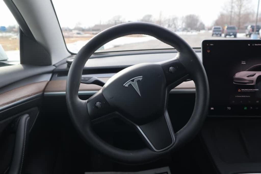 2023 Tesla Model 3 RWD 1-Speed Automatic Electric Motor 8 Speakers, Air Conditioning, Alloy wheels, Audio memory, Auto High-beam Headlights, Auto-dimming Rear-View mirror, Automatic temperature control, Brake assist, Bumpers: body-color, Compass, Delay-off headlights, Driver door bin, Driver vanity mirror, Electronic Stability Control, Exterior Parking Camera Rear, Front Bucket Seats, Front Center Armrest, Front dual zone A/C, Front reading lights, Fully automatic headlights, Genuine wood dashboard insert, Heated door mirrors, Heated Front Bucket Seats, Heated front seats, Heated rear seats, Heated steering wheel, HVAC memory, Illuminated entry, Lane Departure Warning System, Low tire pressure warning, Memory seat, Navigation System, Outside temperature display, Passenger door bin, Passenger vanity mirror, Power door mirrors, Power driver seat, Power passenger seat, Power steering, Power windows, Premium Seat Trim, Radio data system, Radio: Upgraded Audio System, Rain sensing wipers, Rear reading lights, Rear seat center armrest, Rear window defroster, Security system, Speed control, Split folding rear seat, Steering wheel memory, Steering wheel mounted A/C controls, Steering wheel mounted audio controls, Telescoping steering wheel, Tilt steering wheel, Trip computer, Variably intermittent wipers, Wheels: 18" x 8.5" Aero.