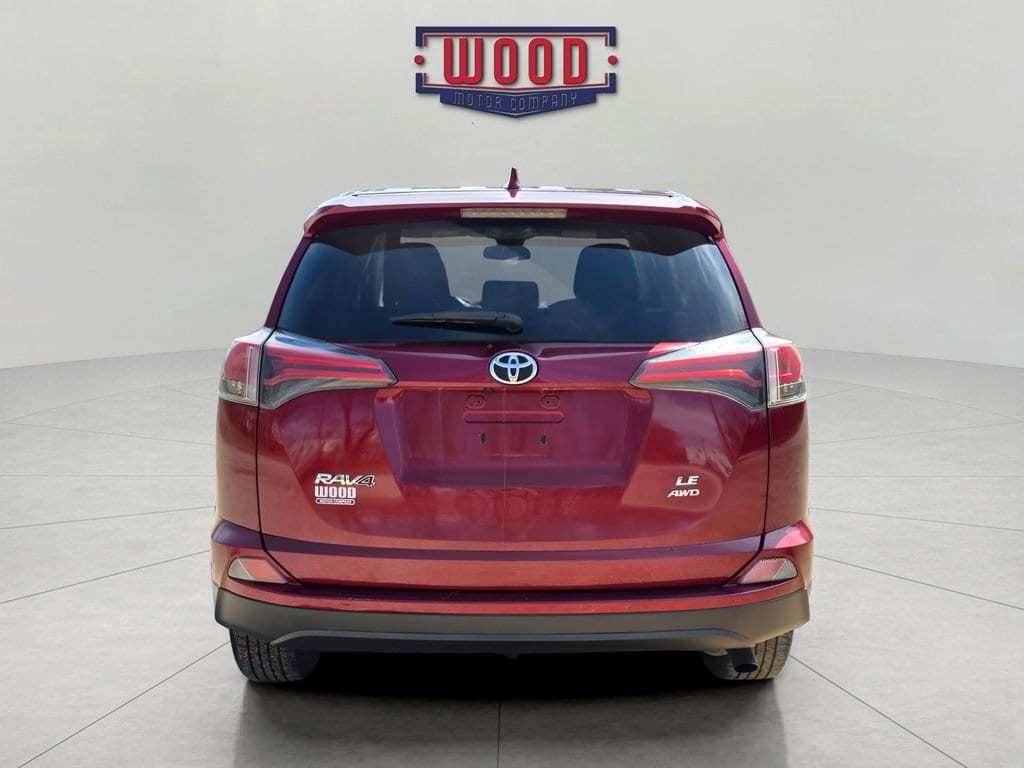 CARFAX One-Owner. RAV4 LE, 4D Sport Utility, 2.5L 4-Cylinder DOHC Dual VVT-i, 6-Speed Automatic, AWD, Black w/Fabric Seat Trim, Air Conditioning, Auto High-beam Headlights, Electronic Stability Control, Exterior Parking Camera Rear, Front Bucket Seats, Front reading lights, Fully automatic headlights, Illuminated entry, Outside temperature display, Power windows, Radio: Entune AM/FM/CD/MP3/WMA Playback w/6 Speakers, Rear window defroster, Remote keyless entry, Steering wheel mounted audio controls, Telescoping steering wheel, Tilt steering wheel, Traction control. Ruby Flare Pearl 2018 Toyota RAV4 LE AWD 6-Speed Automatic 2.5L 4-Cylinder DOHC Dual VVT-iA solid name you can trust... Wood Motor. 22/28 City/Highway MPGAwards:* 2018 KBB.com 10 Best SUVs Under $25,000 * 2018 KBB.com Best Resale Value Awards * 2018 KBB.com 10 Most Awarded Brands